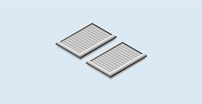 Du kan kjøpe komplette filtersett til våre nyere ventilasjonsaggregater. Alle filtersett inneholder to filter: ett for avtrekksluft og ett for tilluft. For noen av våre eldre aggregater kan du kjøpe separate filter for avtrekk og tilluft separat.